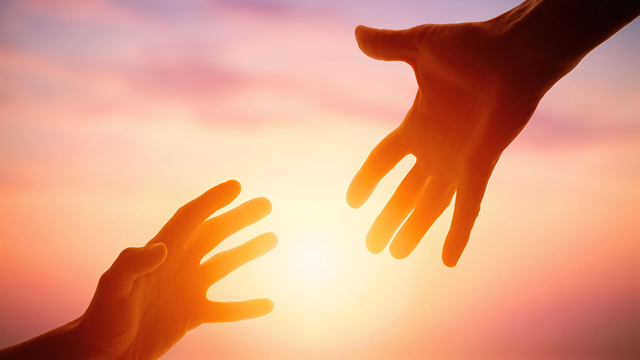 Grijp Zijn uitgestoken handen